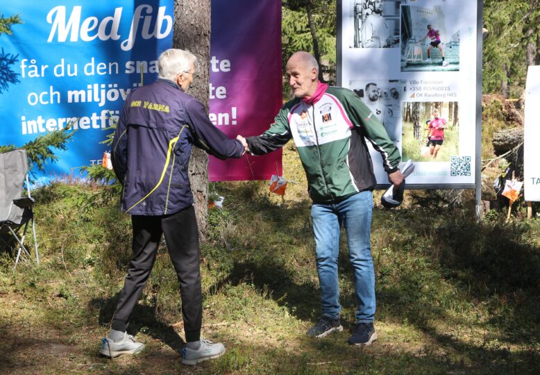 Tammisaari-Jukolan kilpailunjohtaja Bernhard Biström oli puolestaan paikalla kunniavieraana nauttimassa kisatunnelmasta ja samalla kunnioittamassa läsnäolollaan sitä, että Sune Forsström palkittiin nyt tämän kilpailun yhteydessä elämäntyöstään suunnistuksen parissa kartoittajana, ratamestarina ja kilpailunjärjestäjänä Suomen Suunnistusliiton kultaisella ratamestariplaketilla, joka on SSL:n korkein tämän alan tunnustus. Sen hänelle ojensi SSL:n kunniapuheenjohtaja ja myös Kaukametsäläisten jäsen Timo Peltola, joka itsekin osallistui tänään kilpailuun MS Parman väreissä sarjassa H80. Samassa yhteydessä OK Raseborgissa pitkään puheenjohtajana toiminut ja seuramme valmennuksesta ja nuorisotyöstä suurta vastuuta kantanut Kristian Forsell sai SSL:n hopeisen ansiomerkin.
